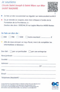 Chaque don, quel qu’en soit le montant, contribuera à faire de l’école Saint-Joseph à Saint-Marc-sur-Mer , un lieu encore plus chaleureux et stimulant pour nos jeunes.