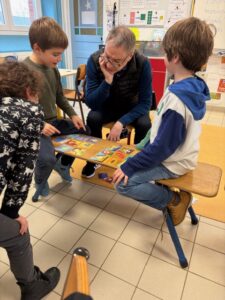 En classe de CE et de CM, un des adjoints du XVème arrondissement de Paris est venu à la rencontre des élèves pour répondre à leurs questions préparées en classe, mais également parler de l’engagement au service d’une collectivité.