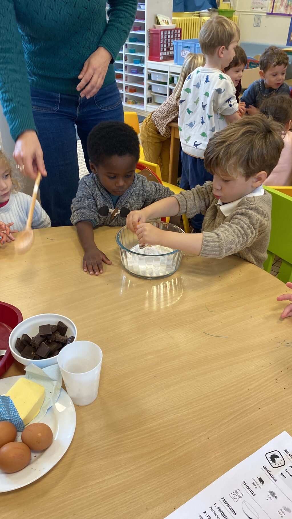 Régulièrement, notre classe retrousse ses manches pour réaliser une recette de cuisine. Ainsi, nous pouvons fêter les anniversaires du mois ! Et comme nous sommes très généreux, nous partageons souvent…